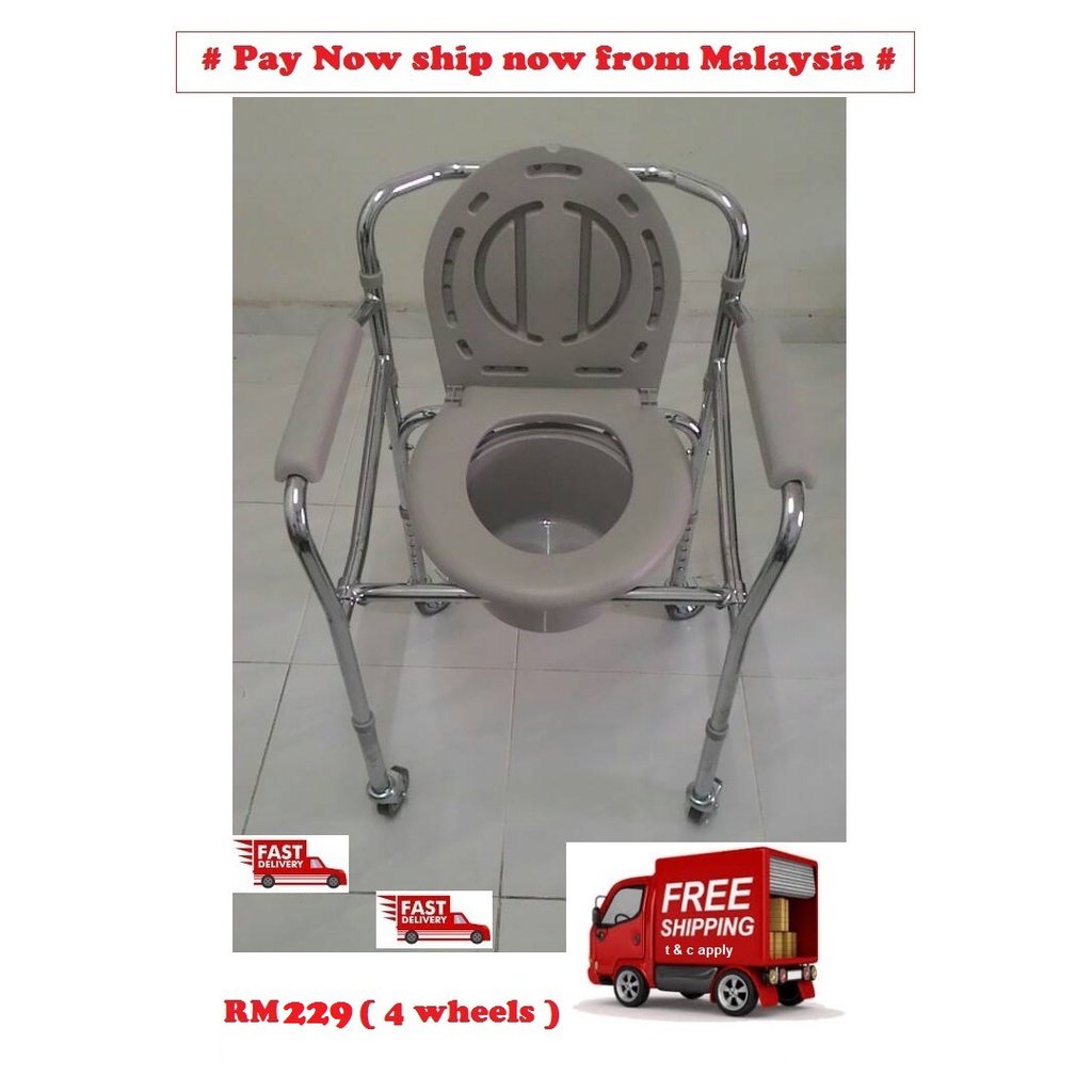 Toilet Commode Chair Kerusi Berak Tandas Duduk Dewasa Wheelchair With 4 Wheels Free Bucket G Wellness Pharmacy Lazada